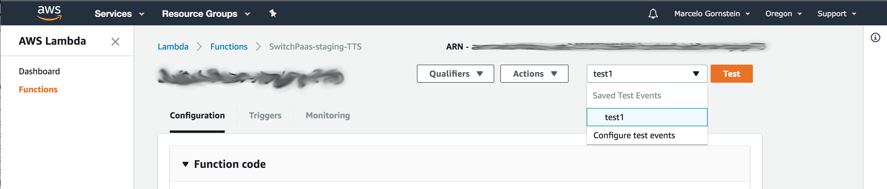 To create and edit your test events, just go to the Lambda console, and at the left