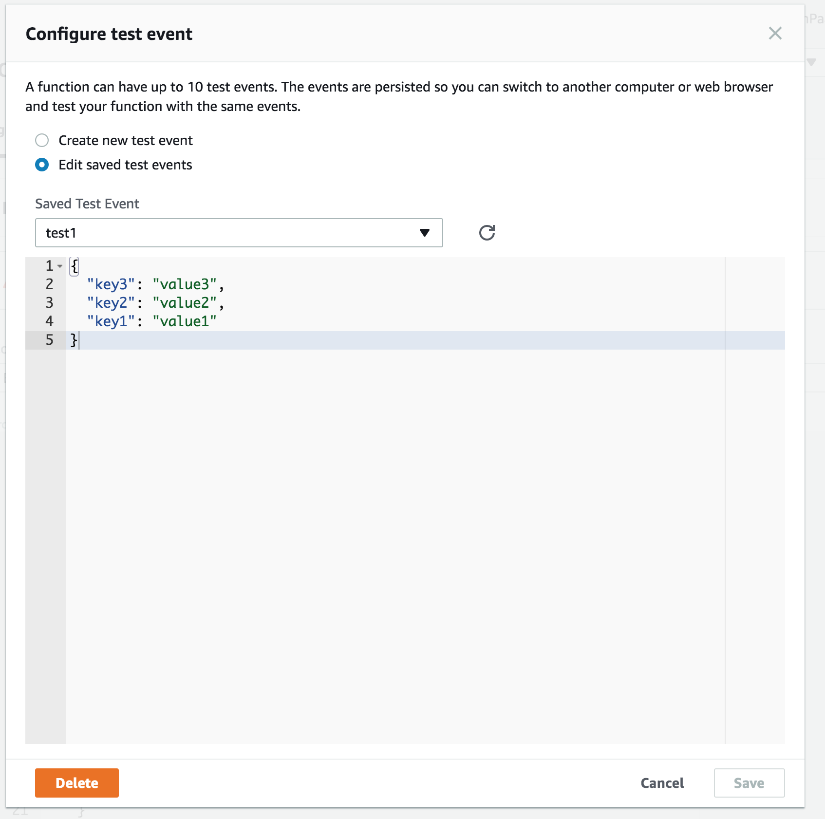 AWS Lambda Console now allows up to 10 test events!